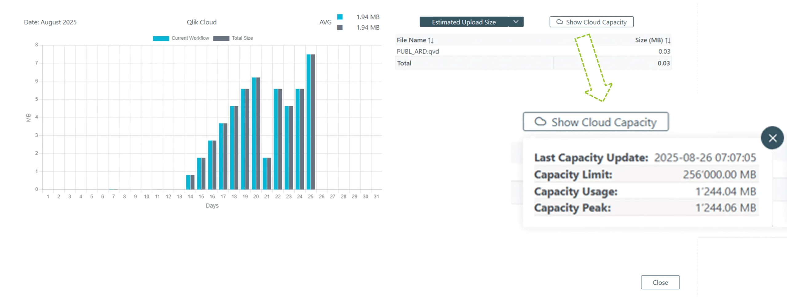 With its push-based approach, data is filtered, anonymized, optimized, and compressed before transfer. This results in lower cloud capacity costs, improved performance, maximum compliance, and a higher ROI. Continuous capacity monitoring for curated data and full transparency of all loading processes – whether hybrid, on-premises, or cloud – provide the foundation for a secure, efficient, and future-proof Qlik Cloud operation.